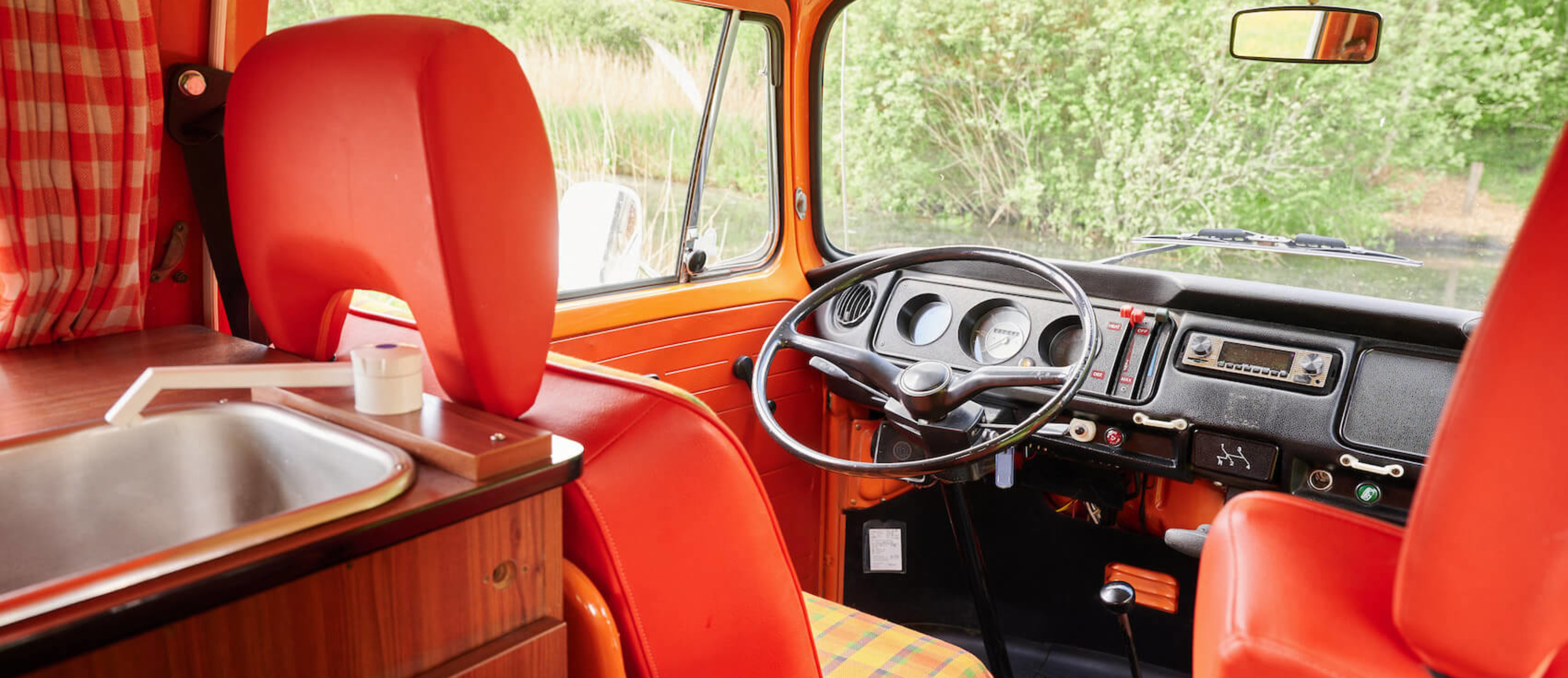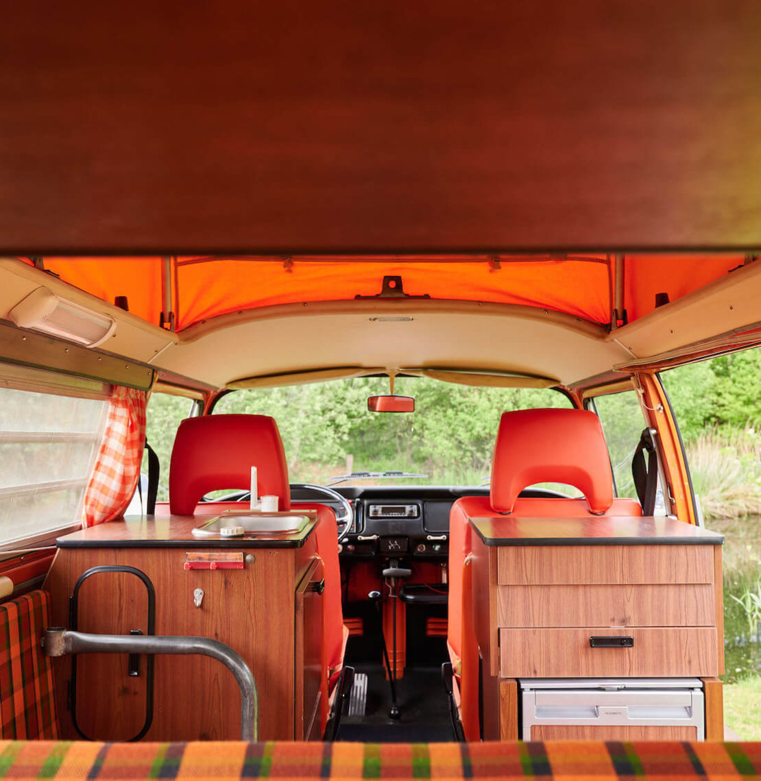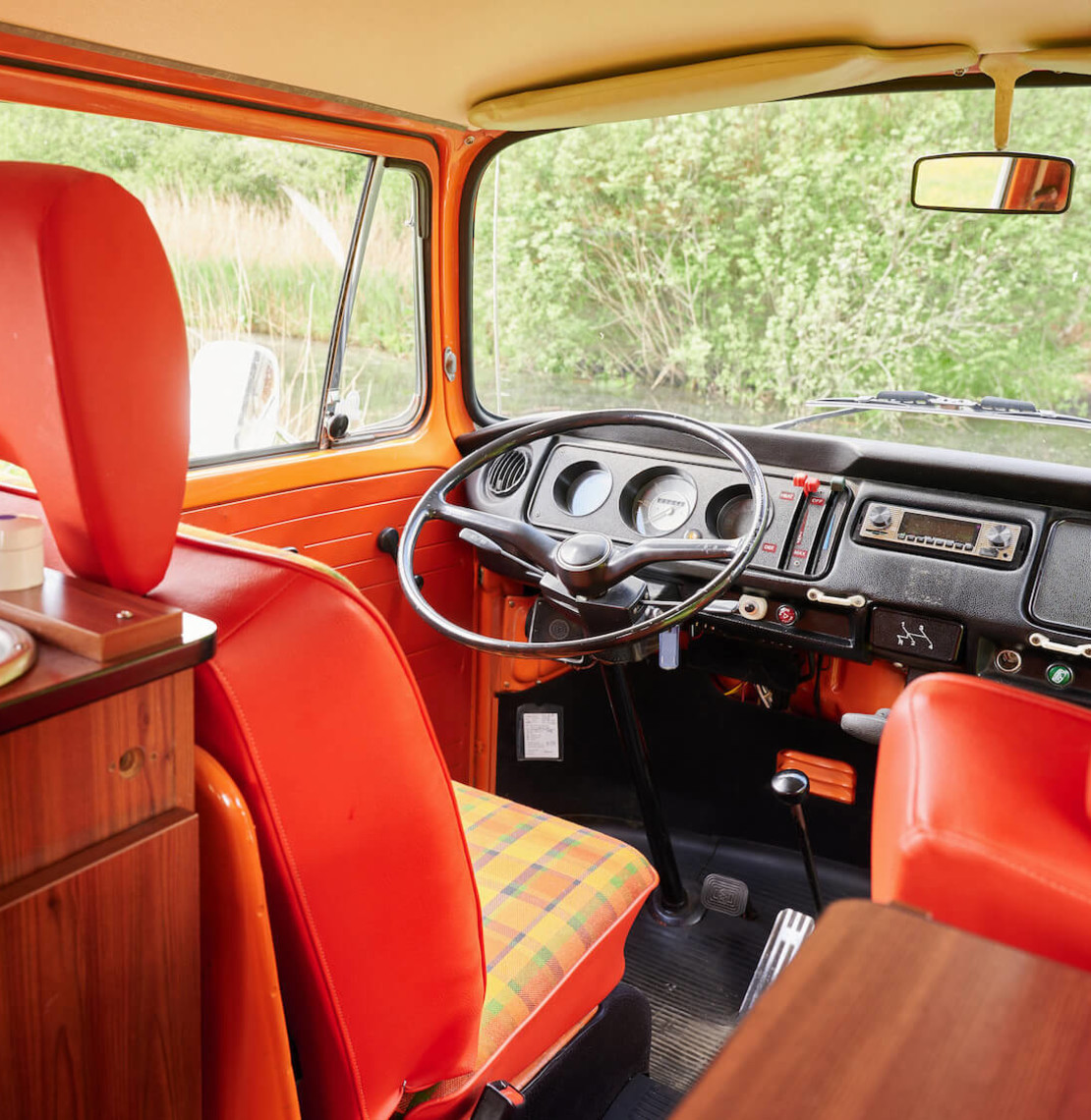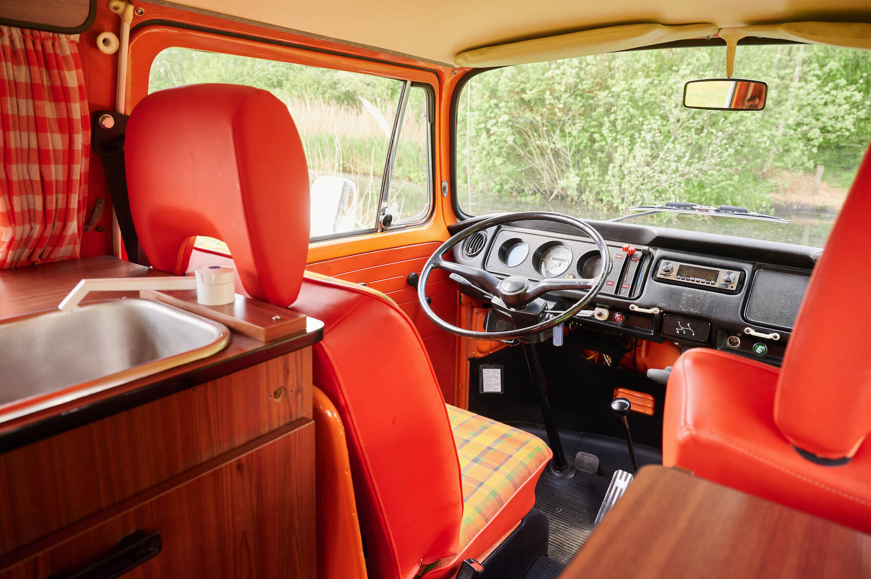 De Texas maakt sinds 2020 onderdeel uit van onze vloot. Via het zogeheten toeristenprogramma is de bus in 1974 door de toenmalige eigenaren persoonlijk opgehaald bij de fabriek in Wolfsburg, waarna deze na een Europa-tour op de boot ging met bestemming Texas, Amerika. Het Dusseldorf interieur biedt naast een ruime zit-slaapbank ook voor het eerst ruimte voor een volwaardige koelkast en twee-pitsgasstel.