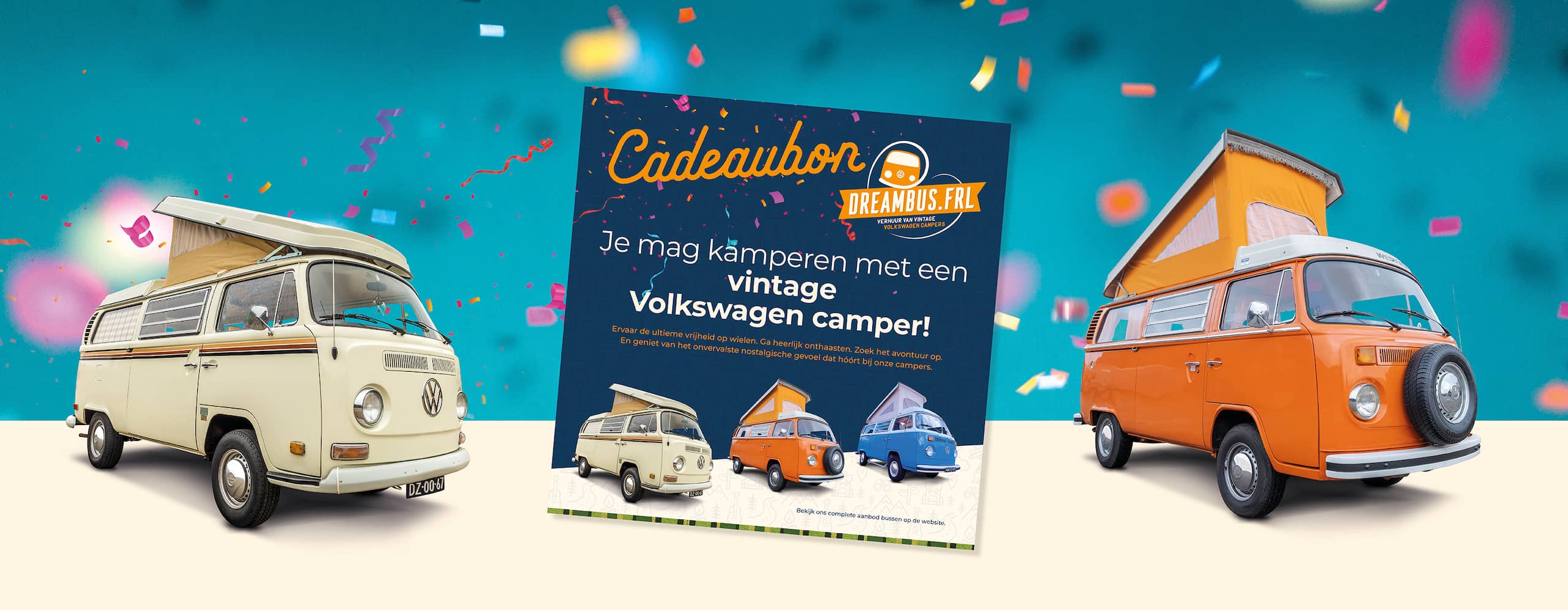 Het werkt als volgt. Jij kiest een van onze vintage Volkswagen campers en geeft daarmee een unieke kampeerervaring cadeau.